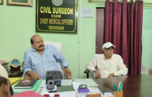 देवघर। शुक्रवार को संथाल परगना प्रमंडल दुमका के क्षेत्रीय उपनिदेशक स्वास्थ्य सेवाएं डॉ सीके शाही ने देवघर के सिविल सर्जन डॉ युगल किशोर चौधरी की उपस्थिति में कार्यालय प्रकोष्ठ में बैठक की। मौके पर राजकीय श्रावणी मेला से संबंधित तैयारियों एवं कार्ययोजना के बारे में जिला स्तरीय प्रतिनियुक्त पदाधिकारियों एवं कर्मचारियों के साथ बैठक कर विस्तृत चर्चा की गई। साथ ही मेला में स्वास्थ्य विभाग की उपलब्धि एवं देवतुल्य कांवरियों के लिए और बेहतर व्यवस्था हेतु दिशा निर्देश दिए गए। बैठक में मेला कोषांग में प्रतिनियुक्त पदाधिकारियों एवं कर्मचारियों तथा शिविर में प्रतिनियुक्ति चिकित्सक और अन्य स्वास्थ्य कर्मियों से भी कार्यस्थल पर ससमय पहुंच कर सेवाभाव से कार्य करने का अनुरोध किया गया। इस दौरान साफ-सफाई पर विशेष ध्यान देने हेतु भी निर्देशित किया गया।