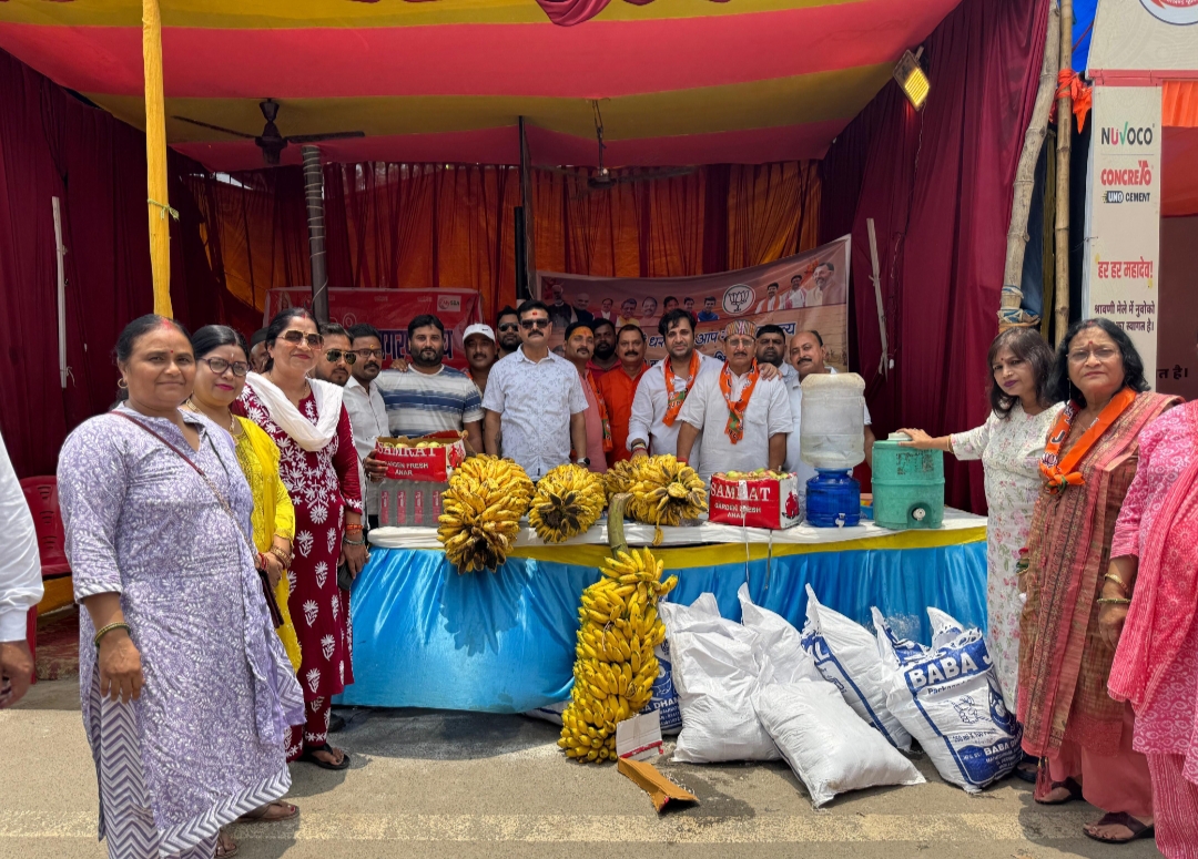 भाजयुमो सेवा शिविर में कांवरियों के बीच शुद्ध पेयजल, फल और शरबत का किया गया वितरण