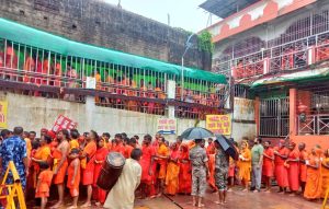 देवघर। राजकीय श्रावणी मेला 2025 के 24 वें दिन रविवार को बाबा मंदिर प्रांगण व आसपास के क्षेत्रों के अलावा रुटलाइन में श्रद्धालुओं से पटा दिखाई दे रहा हैं। रिमझिम बारिश के बारिश के बीच आज सुबह 04:22 मिनट से जलार्पण शुरू होते हीं पूरा मंदिर परिसर बोल-बम व जय शिव जैसे नारों से गुंजयमान हो गया। वही बाबा बैद्यनाथ पर जलार्पण के लिए देवतुल्य श्रद्धालु रात्रि पहर से हीं कतारबद्ध होने लगे थे। साथ ही बीएड कॉलेज से तिवारी चौक, शिवराम झा चौक, नेहरू पार्क, क्यू कॉम्प्लेक्स होते हुए सभी देवतुल्य श्रद्धालुओं को सुगम व सुरक्षित जलार्पण कराया जा रहा है।