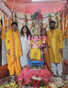 बाबा नगरी देवघर में धूमधाम के साथ हुआ। इस दौरान जिले भर में भक्तों ने विधि विधान के साथ भगवान गणेश का आह्वान करते दिखे। शहर में दर्जन भर स्थानों में भव्य पंडाल का निर्माण कर भगवान गणेश का प्रतिमा स्थापित कर गणपति का आह्वान हुआ। भक्तों ने अटूट आस्था के पूजा अर्चना किया। शहर के मंदिर मोड़ गणेश मंदिर, बिजली आफिस के समीप गणेश मंदिर, बैद्यनाथ शंकर नेत्रालय बाजला महाविद्यालय के समीप, रेड रोज स्कूल गली में केकेएन ग्रुप द्वारा भव्य पंडाल का निर्माण कर प्रतिमा स्थापित किया गया। अगले तीन होने वाले इस अनुष्ठान को लेकर भक्त पूरे तन्मय के साथ जुटे हुए है। इधर भक्तों ने पुजारी के वैदिक मंत्रोच्चारण के बीच पूजा अर्चना करने के बाद आरती किया और इसके बाद प्रसाद का वितरण हुआ। जबकि देर शाम भक्तगण परिवार के साथ मंगल मूर्ति का दर्शन के लिए निकले। युवाओं से लेकर महिलाओं और युवतियां गणपति बप्पा के दर्शन के लिए निकले थे। स्थानीय बैद्यनाथ शंकर नेत्रालय में डा एनडी मिश्रा के नेतृत्व में पूजा अर्चना संपन्न हुआ। साथ ही गणपति बप्पा को तेरी का भोग लगाया गया और भक्तों के बीच महाप्रसाद का वितरण किया गया। मौके पर डॉ एनडी मिश्रा के अलावा उनकी धर्मपत्नी चंद्रप्रभा झा, डॉ निलचंद्र झा, डॉ आद्या मिश्रा, डॉ डी तिवारी, डॉ बीके दुबे, डॉ सतीश ठाकुर, डॉ कुमार गौरव, डॉ शंकर प्रसाद सहित अन्य लोग उपस्थित थे।