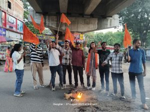 देवघर। बुधवार को अखिल भारतीय विद्यार्थी परिषद के बैनर तले सतसंग चौक पर राज्य विश्वविद्यालय विधेयक 2025 को लेकर विरोध प्रदर्शन किया गया। इस दौरान छात्रों ने मुख्यमंत्री हेमंत सोरेन का पुतला दहन कर कड़ा प्रतिरोध दर्ज कराया। परिषद ने स्पष्ट किया कि सरकार यदि इस विधेयक को लागू करने की कोशिश करेगी तो पूरे प्रदेश में उग्र आंदोलन खड़ा किया जाएगा। राज्य सरकार द्वारा विधानसभा में पारित राज्य विश्वविद्यालय विधेयक-2025 का छात्र संगठनों और शिक्षाविदों ने तीव्र विरोध किया है। इस विधेयक में कुलपति नियुक्ति प्रक्रिया पर सरकार का सीधा हस्तक्षेप, छात्र संघ चुनाव पर रोक तथा विश्वविद्यालयों की स्वायत्तता को कमजोर करने वाले कई प्रावधान शामिल हैं। छात्रों का कहना है कि यह विधेयक न केवल असंवैधानिक है, बल्कि लोकतांत्रिक परंपराओं पर भी सीधा हमला है। मौके पर अभाविप के जिला संयोजक युवराज सिंह ने कहा कि यह विधेयक छात्रों के अधिकारों पर सीधा प्रहार है। सरकार विश्वविद्यालयों को अपनी कठपुतली बनाना चाहती है। कुलपति नियुक्ति में राजनीतिक दखल और छात्र संघ चुनावों पर रोक संविधान के मूल्यों के खिलाफ है। यदि सरकार इस काले कानून को वापस नहीं लेती है तो छात्र सड़क से लेकर सदन तक बड़ा आंदोलन करेंगे। राष्ट्रीय कार्यकारिणी सदस्य खुशी देव ने कहा कि जब तक सरकार इस विधेयक को वापस नहीं लेती, तब तक अखिल भारतीय विद्यार्थी परिषद निरंतर संघर्ष करती रहेगी। कॉलेज अध्यक्ष दीपक कुमार ने कहा कि सरकार छात्रों की आवाज़ दबाने की कोशिश कर रही है। छात्र संघ चुनावों को रोकना युवाओं को लोकतंत्र से दूर करने की साज़िश है। हम इस विधेयक को किसी कीमत पर स्वीकार नहीं करेंगे और हर स्तर पर विरोध जारी रहेगा। मौके पर विजय कुमार, गुलशन, अभिषेक, संतोष, कुंदन, देव, राहुल समेत बड़ी संख्या में छात्र मौजूद रहे और सभी ने एकजुट होकर सरकार के इस अलोकतांत्रिक कदम का विरोध किया।
