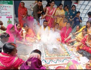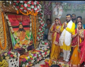 देवघर। शनिवार को स्थानीय शहीद आश्रम रोड में स्थित एक होटल के सभागार में बाबा गणिनाथ गोविंद का वार्षिक जयंती समारोह धूमधाम से मनाया गया। मौके पर बाबा गणिनाथ की पूजा अर्चना करने के बाद हवन कार्यक्रम संपन्न होने के बाद समाज की ओर से अखिल भारतीय मध्यदेशीय वैश्य समाज के लोग भारी संख्या में उपस्थित हुए। पूजा अर्चना के दौरान मुख्य यजमान के रूप में ध्रुव प्रसाद साह व उनकी धर्मपत्नी प्रियंका देवी एवं विजय गुप्ता, मीणा गुप्ता ने मस्ती भूमिका निभाई। पूजा अर्चना के बाद बाबा के भक्तों के बीच महाप्रसाद का वितरण किया गया। दोपहर में बिहार, झारखंड व बंगाल से बाबा के भक्तों का जमावड़ा कार्यक्रम स्थल पर लगा था। मौके पर जुटे लोगों ने दोपहर में भोजन करने के बाद उपस्थित लोगों ने सांस्कृतिक कार्यक्रम का आनंद लिया। इसके बाद समाज के लोगों को मोमेंटो व बाबा गणिनाथ की तस्वीर भेंटकर सम्मानित किया गया।