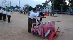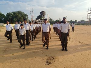 देवघर। राष्ट्रीय स्वयंसेवक संघ के शताब्दी वर्ष को लेकर चहुंओर विजयादशमी उत्सव के मौके पर संचलन कार्यक्रम का आयोजन किया जा रहा है। इसी सिलसिले में इसी सिलसिले में मंगलवार को जिले के सारवां प्रखंड मुख्यालय में राष्ट्रीय स्वयंसेवक संघ सारवां खंड द्वारा विजयदशमी उत्सव का भव्य आयोजन किया गया। मौके पर पथ संचलन व शस्त्र पूजन कार्यक्रम आयोजित किया गया। आरएसएस के स्वयंसेवकों का एकत्रीकरण सारवां प्लस टू स्कूल मैदान में किया गया, जहां से सभी स्वयंसेवक अनुशासित तरीके से कतारबद्ध होकर पर संचलन कार्यक्रम में शामिल हुए।