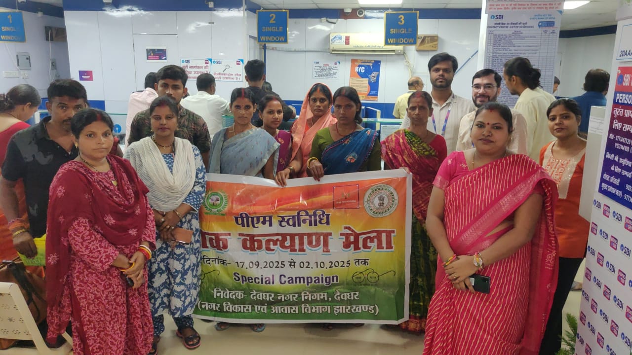 देवघर। शहरी कार्य मंत्रालय के निर्देश पर देवघर नगर निगम में लोक कल्याण मेला का आयोजन गांधी जयंती से 15 अक्टूबर तक स्ट्रीट वेंडरो के लिए आयोजित किया जा रहा है। भारत सरकार, आवासन और शहरी कार्य मंत्रालय के निर्देश पर पीएम स्वनिधि योजना के अन्तर्गत नगर निगम में लोक कल्याण मेला का आयोजन देवघर नगर निगम क्षेत्र के सभी बैंक शाखाओं में किया गया। नगर आयुक्त सह प्रशासक रोहित कुमार सिन्हा के निर्देशानुसार आयोजित इस अभियान का मुख्य उद्देश्य पथ विक्रेताओं को माइक्रो से क्रेडिट तक रास्ता आसान बनाने, डिजिटल सशक्तिकरण को बढ़ावा देने और क्षमता संवर्धन एवं कल्याणकारी योजनाओं से संवर्धन सुनिश्चित करना है।आज तिवारी चौक एसबीआई शाखा मे पीएम स्वनिधि लोक कल्याण मेला आयोजित किया गया। लाभुकों को जानकारी देती देवघर नगर निगम की कम्युनिटी ऑर्गेनाइजर कुमारी अलका सोनी , शाखा प्रबंधक राजीव रंजन मिश्रा सहित अन्य लोग उपस्थित थे।आज तिवारी चौक एसबीआई शाखा मे पीएम स्वनिधि लोक कल्याण मेला आयोजित किया गया। लाभुकों को जानकारी देती देवघर नगर निगम की कम्युनिटी ऑर्गेनाइजर कुमारी अलका सोनी , शाखा प्रबंधक राजीव रंजन मिश्रा सहित अन्य लोग उपस्थित थे।