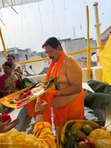 सारठ विधायक उदय शंकर सिंह ने कृत्रिम तालाब में दिया अस्ताचलगामी सूर्य को अर्घ्य