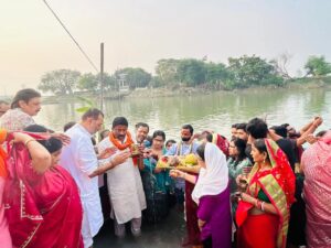 सांसद निशिकांत सहित अन्य गणमान्य ने दिया अर्घ्य
