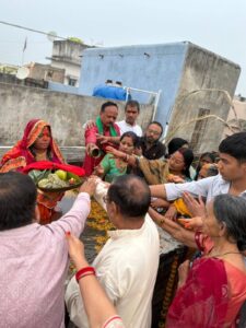 शिक्षिका स्मृति ने किया छठ व्रत, परिजनों ने दिया अर्घ्य