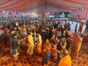 भजन-कीर्तन के दौरान पूरा परिसर एक आध्यात्मिक रंग में रंग उठा।