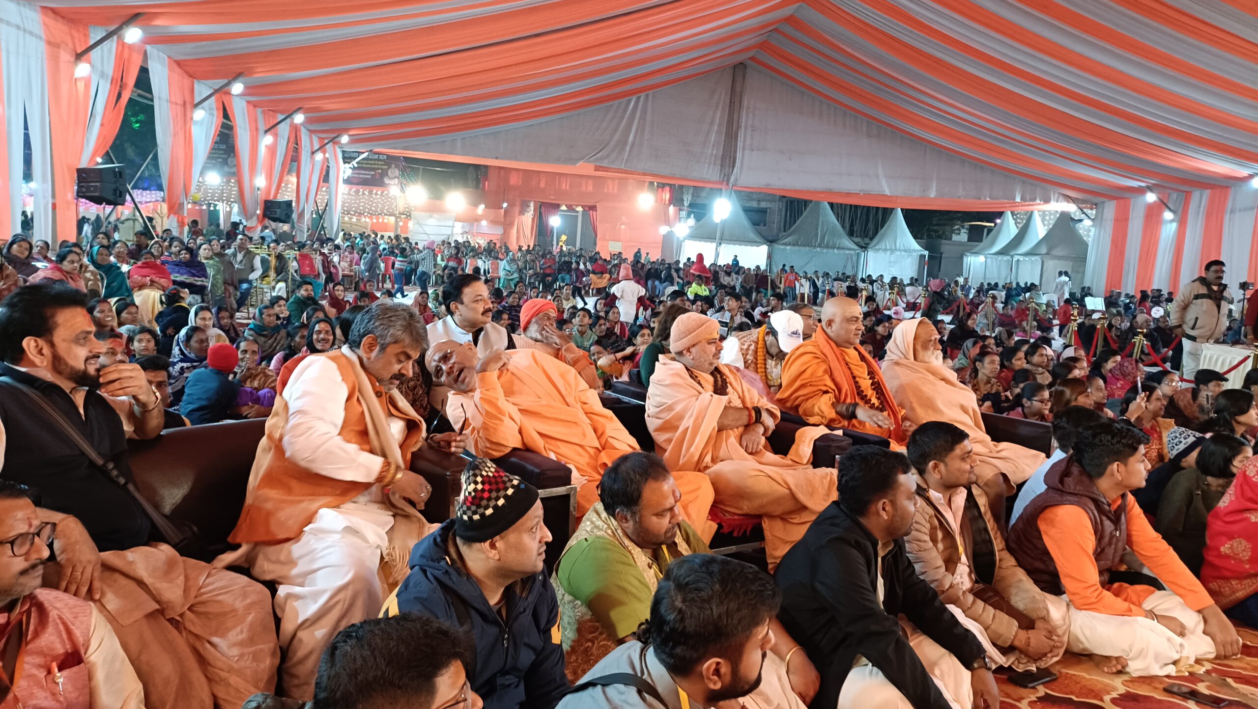 बाबा सत्यनारायण मौर्य के प्रवचन के दौरान हजारों श्रद्धालु मंत्रमुग्ध होकर बैठे रहे। बीच-बीच में “जय श्रीराम”, “हर हर महादेव” और “भारत माता की जय” के नारों से वातावरण गूंजता रहा।