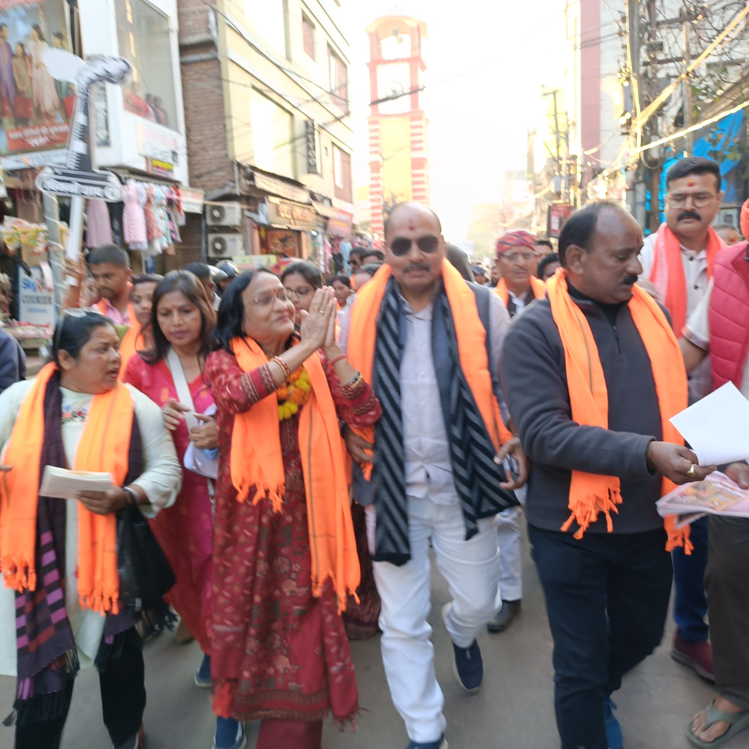भाजपा नेताओं और कार्यकर्ताओं का यह पैदल मार्च टावर चौक से प्रारंभ होकर आजाद चौक, अवंतिका गली सहित शहर के अन्य व्यस्त इलाकों से गुजरा। हाथों में पार्टी के झंडे, बैनर और पोस्टर लिए कार्यकर्ता “देवघर की मेयर कैसी हो—रीता चौरसिया जैसी हो” जैसे नारों के साथ पूरे उत्साह में नजर आए। मार्च के दौरान वातावरण पूरी तरह चुनावी रंग में रंगा हुआ दिखा और आम लोगों का भी इस जुलूस की ओर खासा ध्यान आकर्षित हुआ।