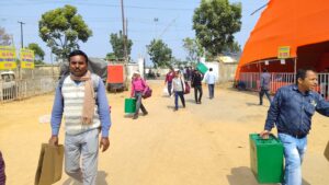 देवघर नगर निगम चुनाव 2026 में मतदान केंद्र की ओर रवाना होते मतदान कर्मी
