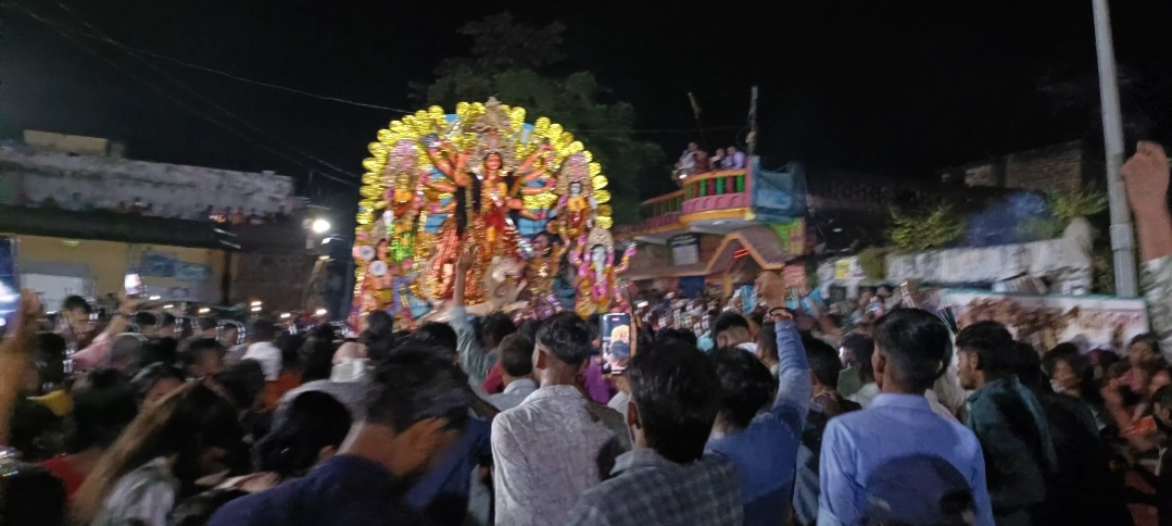 रिमझिम फुहारों के बीच शहरी व ग्रामीण क्षेत्रों के पूजा पंडालों व मंदिरों से निकला विसर्जन जुलूस, अश्रुपूरित नेत्रों से दी गई मां दुर्गा को विदाई, प्रतिमा का किया गया विसर्जन